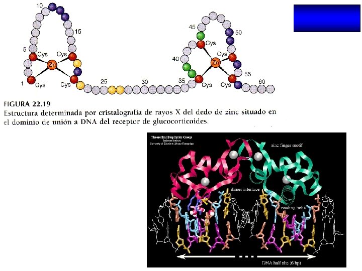 Organización estructural de los NRs Región variable (específica de isoformas) AD Dominio de unión al DNA Dominio de unión al ligando NLS AD H 2 N COOH A/B C (100 -500 aa) (68 aa) Transactivación AF-1 Dimerización (débil) AD: Dominios autónomos de transactivación NLS: Señales de localización nuclear D E F (225 -285 aa) Dimerización (fuerte) Transactivación AF-2 (dependiente de ligando) NLS