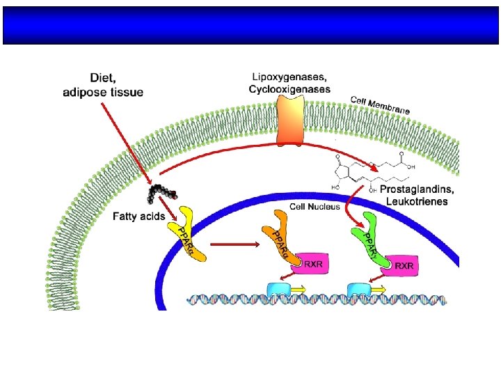 Potential mechanisms of insulin sensitization by PPAR-gamma ligands. The receptor PPAR-gamma is predominantly expressed in adipose tissue. Ligand interactions with the receptor mediate specific changes in adipose gene expression. Altered expression of adipose genes such as fatty-acid transporter 1 may contribute to reduced production of free fatty acids (FFAs), which, in turn, is predicted to have insulin-sensitizing effects in muscle and liver. Changes in expression of other genes such as CAP or 11ßHSD 1 may contribute to locally increased insulin action in adipose tissue and/or reduced visceral adiposity. Altered expression of circulating factors including TNF- , resistin and Acrp 30 is also likely to indirectly mediate increased action of insulin in liver or muscle and glucose utilization; suppression of PDK 4 activity in muscle is an example of one (probably indirect) effect. DAVID E. MOLLER. Nature 414, 821 - 827 (2001); doi: 10. 1038/414821 a