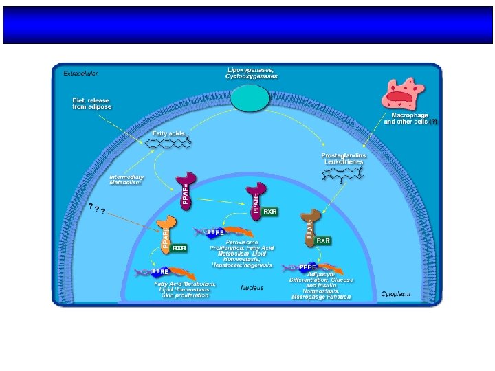PPARgamma promotes insulin sensitivity Rosen, E. D. et al. J. Biol. Chem. 2001; 276: 37731 -37734 PPAR promotes insulin sensitivity. Noncompeting models of the mechanisms by which PPAR activation by TZD drugs ameliorates insulin resistance are shown. In A, TZDs act on PPAR in adipose tissue to increase the glucose transporter Glut 4 and to decrease levels of cytokines that induce insulin resistance in liver and muscle. In B, TZDs act directly on multiple tissues to redistribute fatty acids away from muscle and liver and into fat, resulting in improved glucose utilization in the periphery.