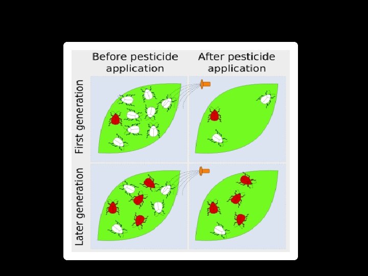 Examples of Evolution Pesticide Resistance * Pesticides are chemicals used to kill insects that harm crops * Occasionally, these insects develop adaptations that make them resistant, allowing them to survive, reproduce, and pass on their adaptation onto their offspring