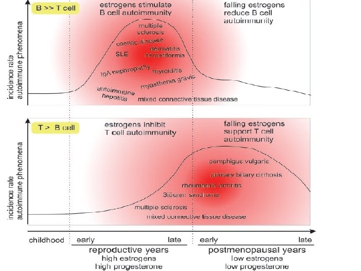 • Hormonal Factors – About 90% of autoimmune diseases occur in women – cause not known – In animal models estrogen can induce B cells to enhance formation of anti-DNA antibodies – SLE either appears or exacerbates during pregnancy