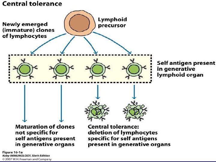 Autoimmunity Immune system has evolved to discriminate between Self and Non-self Mediated by auto-reactive T cells and auto-reactive B cells (auto-antibodies) Tolerance to self is acquired by: A) Deletion (clonal deletion) OR B) Functional inactivation (clonal anergy) of developing lymphocytes that possess antigenic receptors with high affinity for self-antigens.