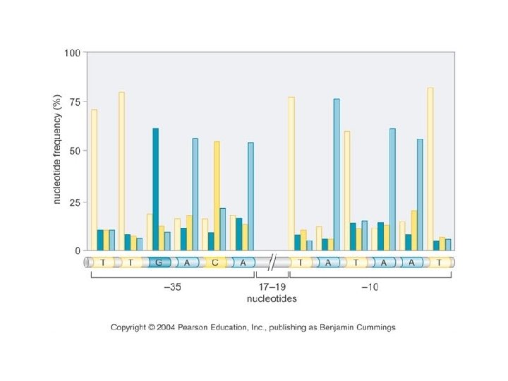 • An additional DNA element, UP-element, that binds RNA polymerase is found in some strong promoters and increase polymerase binding by providing an additional specific interaction between the enzyme and the DNA. • Another class of promoters lacks a -35 region and instead has a so-called “ extended -10” element.