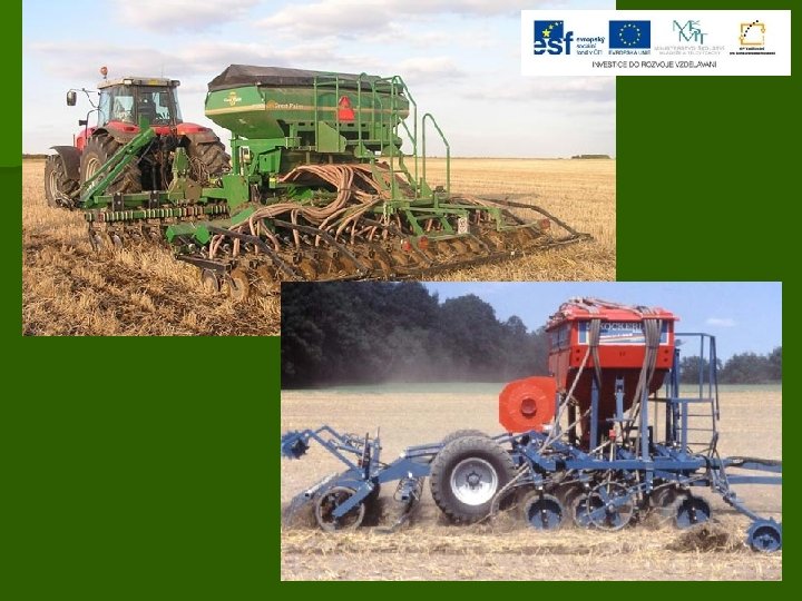 n Výsevní ústrojí – dávkuje osivo a rozděluje ho rovnoměrně do semenovodů – válečkové – hrotové – – kartáčkové – – pneumatické přetlakové – – pneumatické podtlakové-