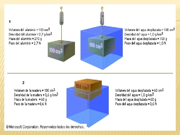 Ejemplo N° 1: 1) Una esfera de hierro de 3 cm de radio se deja caer en un estanque lleno de agua de 120 cm de profundidad. Calcular: a) Peso de la esfera b) Empuje c) Fuerza resultante d) Aceleración de la esfera e) Tiempo que tarda en llegar al fondo Ejemplo N° 2: Un bloque de madera de densidad 0, 6 g/cm 3 y dimensiones 80 cm por 10 cm por 5 cm flota en agua. Calcular la fracción de volumen que permanece sumergido.