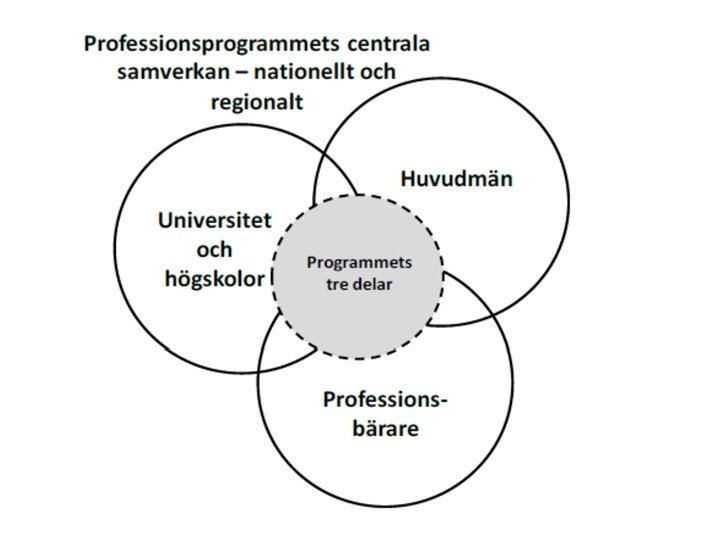 Professionsprogrammets tre delar 1. Systematisk kompetensutveckling – högskolekurser, kollegialt lärande och utvecklingsprojekt 2. Beskrivning, identifikation och erkännande av kompetens 3. Ett strategiskt förhållningssätt till identifierad och erkänd kompetens