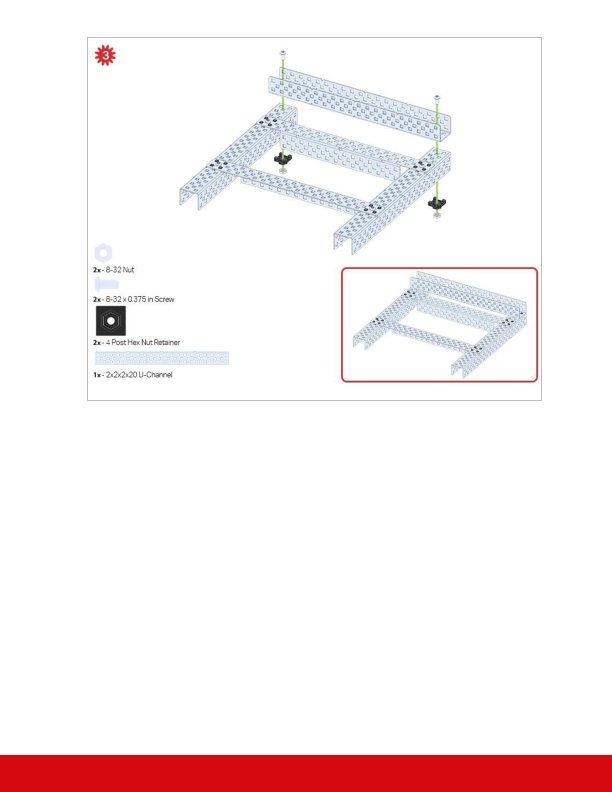 a different type of component, such as a standoff, it may be appropriate to insert the screw through this side. Align any additional components to the back of the main structural component, if applicable. If the retainer is being used to connect two structural components, use an 8 -32 screw of appropriate length to secure the structural components through the hole and hex nut. If used to connect a different type of component, such as a standoff, secure it directly or with a hex nut.
