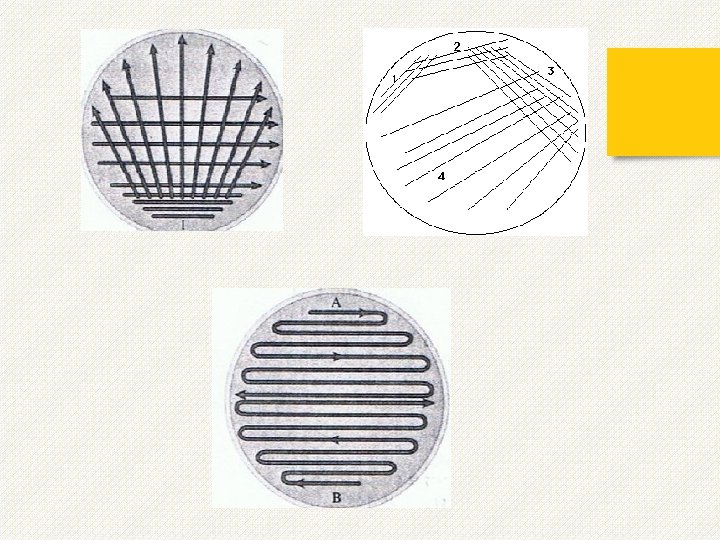 Procedure 1) With the loop, spread the inoculum back and forth across the upper 1/4 of the plate, keeping the lines of inoculation very close together (area 1 in figure below). 2) Isolated colonies are not expected in this area. Do not use strong pressure, which will break the surface of the agar. Use the end of the loop, not its side when streaking. Dispose of the loop in the biohazard bucket on the bench. 3) Turn plate approximately 90 o. C. Streak the plate as indicated in the figure (area 2) across about 1/4 of the plate. Dispose of the loop.