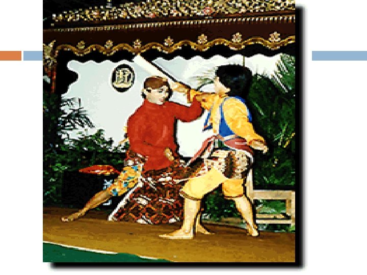 Seni pertunjukan wayang: - Wayang Adam Ma’rifat untuk media berkhotbah - Wayang Wahyu ciptaan baru umat katolik - Wayang kulit purwa menampilkan cerita sejarah Wayang orang menampilkan lakon dari Mahabarata dan Ramayana.