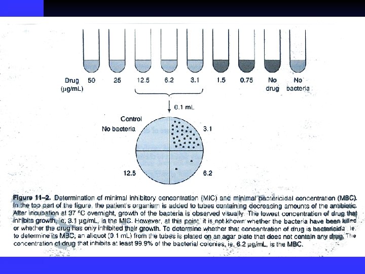 MIC & MBC n n Minimum Inhibitory Concentration,MIC Minimum Bactericidal Concentration,MBC Bactericidal drugs usually have an MBC equal or very similar to the MIC Bacteriostatic drugs usually have an MBC significantly higher than the MIC