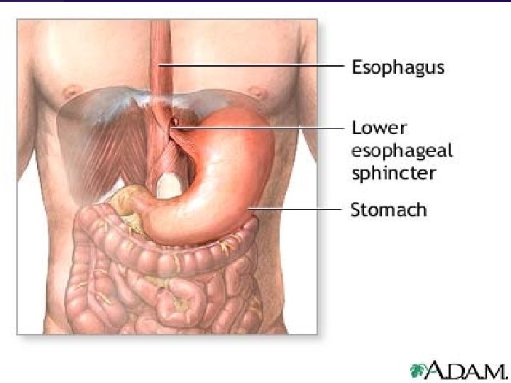 Esophagus ¨ Tube from pharynx to stomach ¨ Upper esophageal sphincter (UES or cardiac sphincter) closed except when swallowing ¨ Lower esophageal sphincter (LES) closes entrance to stomach; prevents reflux of stomach contents back into esophagus
