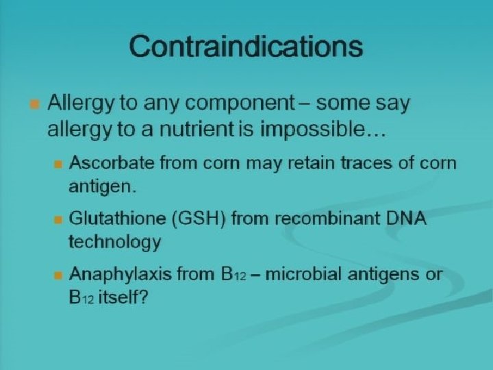 PNT Placenta : human Placenta Extract (Laennec, Green-Cross) Nutritional : Vitamin, Mineral & Herbs (IVNT , IM, Supplements) Therapy : Target & Systemic Therapeutic Injection (IM & IVNT) PNT- HAL Protocol PNT- Liver Protocol PNT-QOL Protocol Laennec 5@ Laennec 1. Laennec SQ Abdomen : 1 -8@ Vit. C 10 g Hishiphagen Amino-Acid 2. Laennec IM Deltoid, Gluteus, Para. Vertebral m. , etc : 1 -8@ 10% Mg. SO 4 10 ml Glutathione Vit. C Vit. B 5 1@-3@ Lipoic Acid Zn Vit. B 6 1@-3@ Vit. B 5 Vit. B-Complex Vit. B 12 1@ Vit. B 6 10% Mg. SO 4 Fursulthiamine 1@ Trace Minerals Hishiphagen 1 -2@ Gingko-Biloba 1@ PNT-Basic Protocols 3. Laennec + Myers’ Cocktail 4. Combination 5. Add the Other Protocols