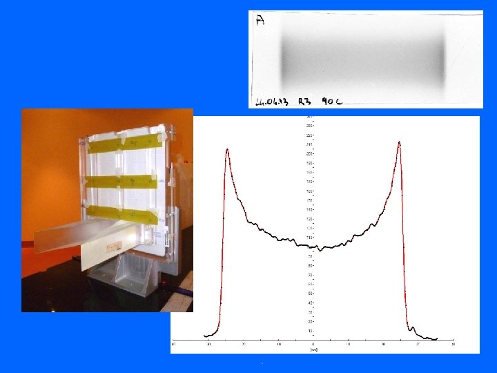 • • EBT 3 radiochromic films self-developing and water resistant dose range : 0. 01 – 10 Gy high spatial resolution (0. 2 mm) no room light sensitivity Proton beams