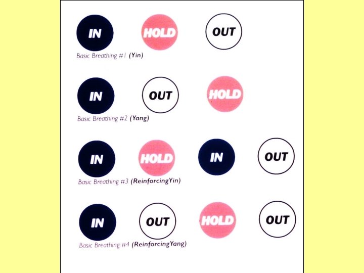 • Inhalation =Opening of Yin =Reinforcing Deficient Qi =Movement of Qi • Exhalation =Closing of Yang =Reducing Excess Qi =Increase of Qi The opposition of Yin Yang is involved in every single breath you take.