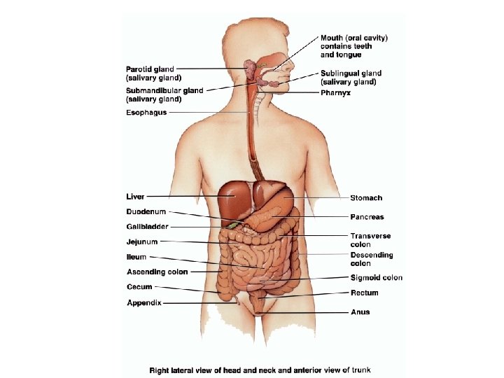 Introduction: Ingestion and Digestion • Ingestion—Food material taken into mouth • Digestion—Food is broken down and travels through the gastrointestinal tract. – Digestive enzymes aid breakdown of complex nutrients. • Proteins → amino acids • Sugars → glucose • Fats → fatty acids or triglycerides
