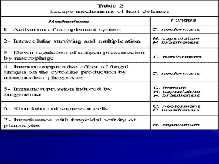 When facing agressive conditions some fungi are able to use various and complex strategies involving mechanisms such as suppression of cytokine production reduction of the fungicidal activity of macrophages