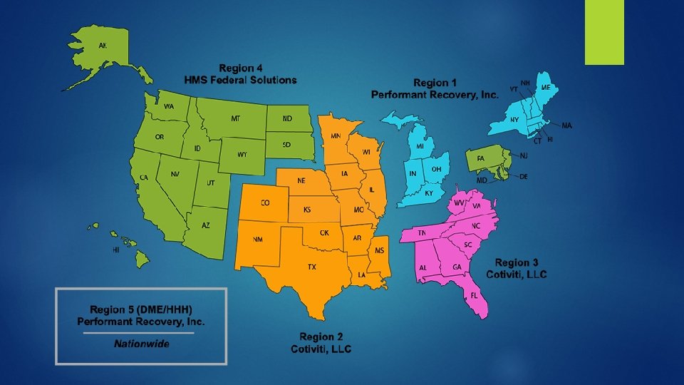 Performant RAC for Region 1, which includes Ohio, Indiana, Kentucky, Connecticut, Main, Michigan, Massachusetts, New Hampshire, Rhode Island, and Vermont Also reviews Durable Medical Equipment, Prosthetics, Orthotics, and Supplies (DMEPOS) and Home Health / Hospice for all 50 states.