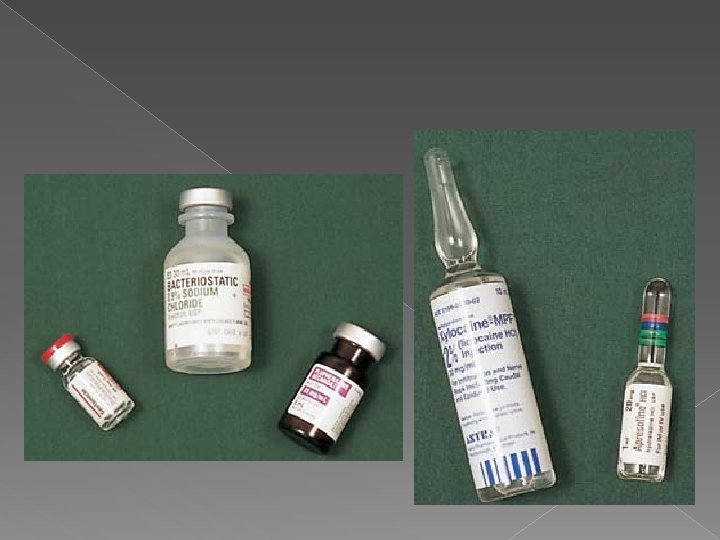 Injectable Drugs � Supplied as: 1. Sterilized solutions 2. Sterilized suspensions 3. Powders that must be mixed, or ________ with sterile solution � May be stored in: › Vials (single or multi-dose) › Ampules