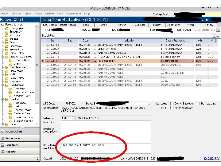 Adding a prescription to the Long Term Meds List • Crtl – U © 2017 Applied Informatics for Health Society (AIHS)