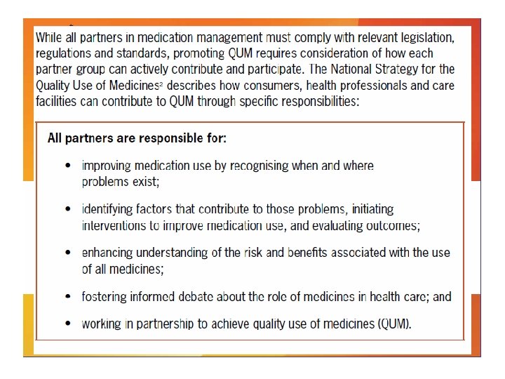 Some problems related to medications • Adverse effects of polypharmacy – Cognition, behaviour, falls, mortality, QOL – Cost $1→$1. 33 • Human rights issues and autonomy • Appropriate vs inappropriate use • Antibiotics and resistant microorganisms