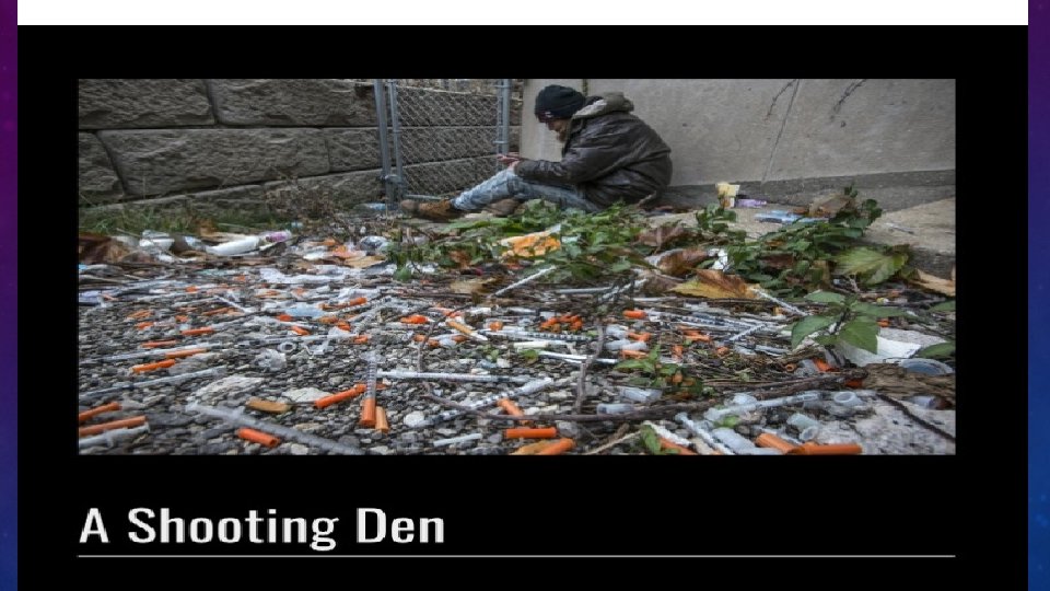WITHDRAWAL SYMPTOMS • Opioid withdrawal (Dope sick) • • • Severe nausea/ vomiting Diarrhea Muscle aches Fever Lacrimation (tearing) Pilo-erection (goosebumps) Pupils dilated Yawning Insomnia