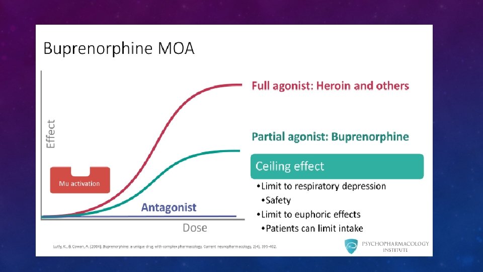 SUBOXONE • Can be given as single dose • More effective as divided doses to manage craving • Very slow to dissociate from opioid receptors -24 to 60 hours