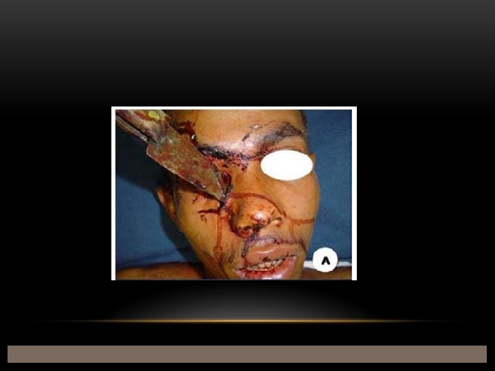 INSTRUMENTOS CORTOCONTUNDENTES • Os instrumentos corto-contundentes são aqueles que atuam por pressão exercida sobre uma linha, como, por exemplo, o machado, um golpe de facão desferido com a lâmina, o cutelo etc. • As lesões produzidas pelos instrumentos cortocontundentes são denominadas corto-contusas.