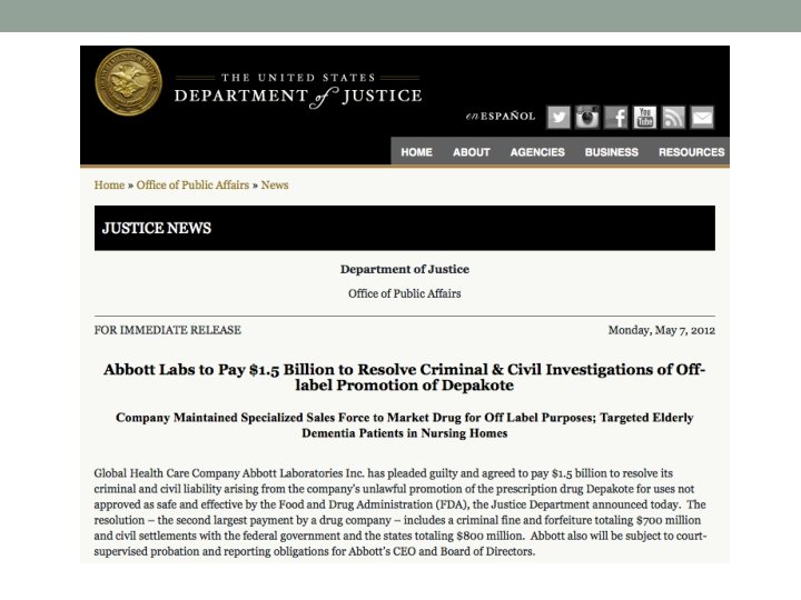 Twenty-Five Years of Pharmaceutical Industry Criminal and Civil Penalties: 1991 Through 2015 - Sammy Almashat, M. D. - M. P. H. Sidney M. Wolfe, M. D. - Michael Carome, M. D. • “From 1991 through 2015, a total of 373 settlements were reached between the federal and state governments and pharmaceutical manufacturers, for a total of $35. 7 billion. ” 1 • “Financial penalties continued to pale in comparison to company profits, with the $35. 7 billion in penalties from 1991 through 2015 amounting to only 5% of the $711 billion in net profits made by the 11 largest global drug companies during just 10 of those 25 years (2003 -2012). ” 1 1 - Almashat, S. , Wolfe, S. , & Carome, M. (2016). Twenty-Five Years of Pharmaceutical Industry Criminal and Civil Penalties: 1991 Through 2015. Public Citizen. Retrieved from https: //www. citizen. org/sites/default/files/2311. pdf