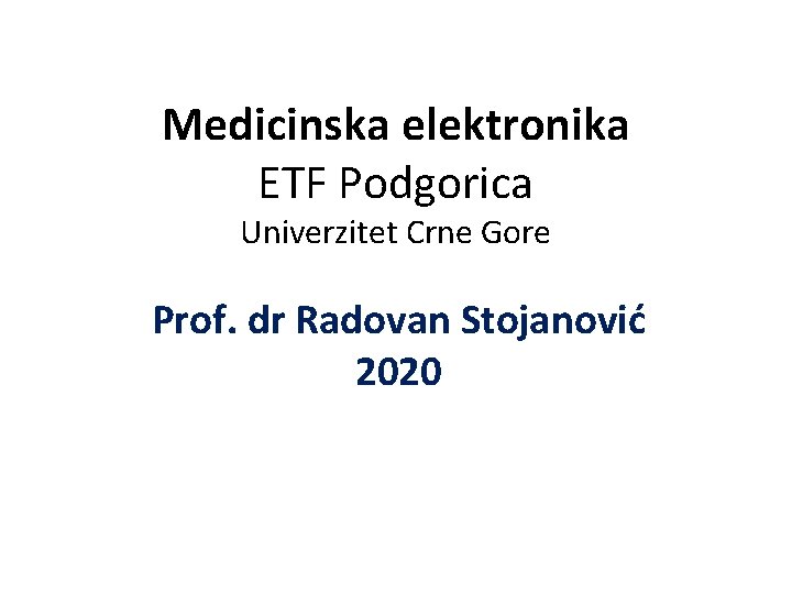 Medicinska elektronika ETF Podgorica Univerzitet Crne Gore Prof. dr Radovan Stojanović 2020