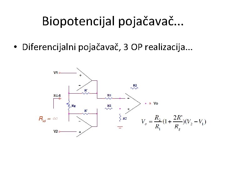 Biopotencijal pojačavač. . . • Diferencijalni pojačavač, 3 OP realizacija. . .