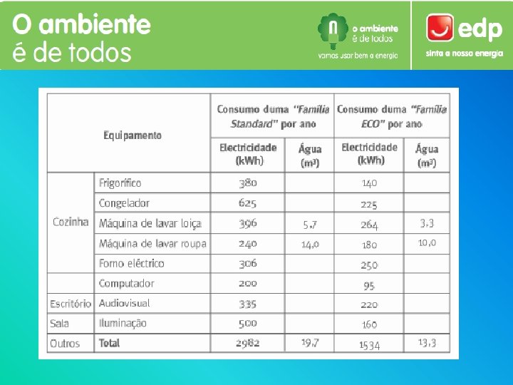 Veja o que pode ganhar! Numa habitação equipada com gás para o aquecimento da água e do ambiente e ainda com unidades de ar condicionado para o arrefecimento, a factura total de energia ultrapassa, na maior parte dos casos, o valor médio mensal de € 60. Com uma escolha adequada das fontes de energia e de uma habitação com qualidade de construção adequada este custo pode ser reduzido para cerca de € 35.