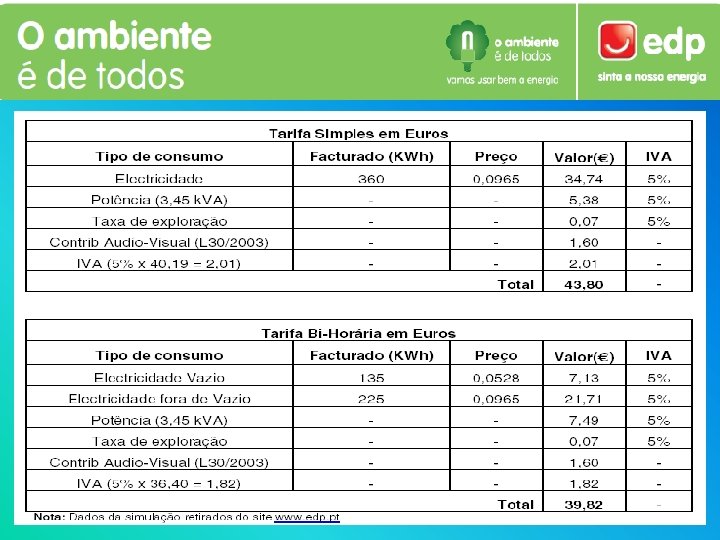 3º Passo – Saiba o que fazer para aderir. As alterações contratuais são gratuitas e podem ser requisitadas em qualquer balcão da EDP Distribuição ou através do endereço www. edp. pt. No mesmo local encontra ainda ao seu dispor a possibilidade de efectuar uma simulação para o seu caso em particular, e assim perceber quanto pode poupar.