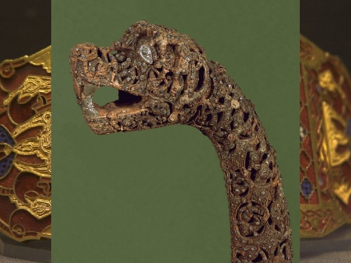 • Painters mainly worked on elaborate decorations for Bibles and Prayer books Page from illuminater Gospel, early 15 th century Ethiopia, Lake Tana region Wood, vellum, pigment; H. 16 1/2 in. (41. 9 cm) Rogers Fund, 1998 (1998. 66) • Elongated figures and elegant insignificant details are rendered with so much care that they become the dominant feature.