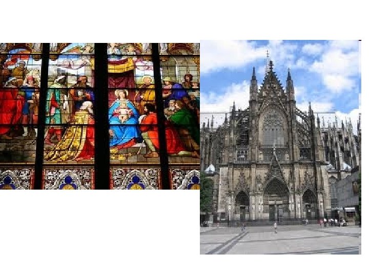 • Gothic Style In Europe in the twelfth century, many people moved into towns. Workers (stone carvers, carpenters, etc. ), organized into guilds (unions) , where apprentices were taught by masters. A wealthy merchant class, with pride in their growing cities, and religious faith led to the building of huge cathedrals. • Two developments in architecture_ the pointed arch and the flying buttress, along with the use of the vault allowed them to make taller buildings whose walls were perforated with stain glass windows that changed the light to a rich, glowing color and educated the illiterate with Biblical Stories being reveled in glass. • • • Gothic cathedrals were such a symbol of civic Pride that an invader's worst insult was to pull down the tower of conquered town ’s cathedral. Communal devotion was So intense that Lords and ladies worked beside butchers and masons, dragging carts loaded with stone from quarries. Buildings were so elaborate tat construction literally took ages— 6 centuries for Cologne Cathedral.