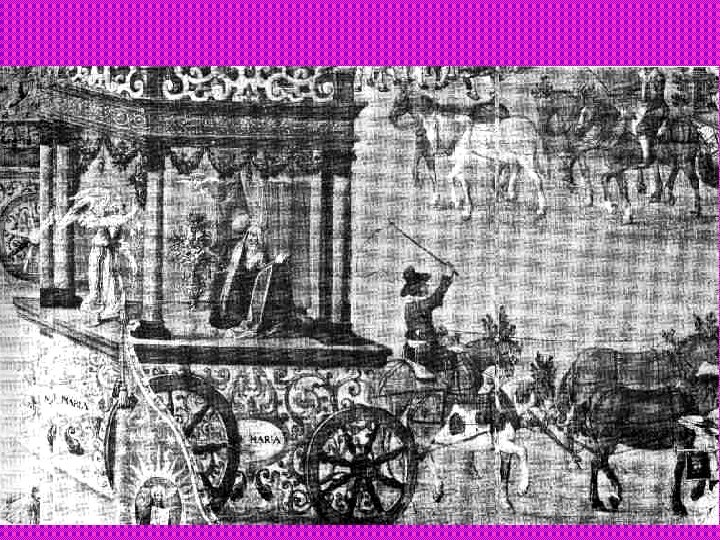 Stage Performances - Not bound to liturgy Mainly vernacular Theme: Salvation history Performed Rhetorical and theatrical effects Initially ecclesiastical control Outdoor performances From the 13 th to the 16 th century