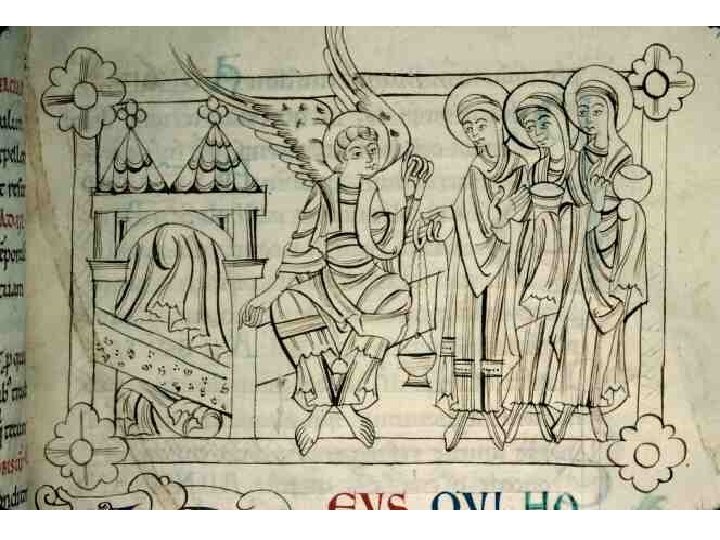 The „Quem queritis” trope „Quem queritis? ” = „Whom are you looking for? ” (Mk 16) Angel: “Quem queritis in sepulchro, O Christicolae? ” Marys: “Ihesum Nazarenum. ” Angel: “Non est hic. Surrexit sicut praedixerat. Ite, nuntiate quia surrexit a mortuis. ”
