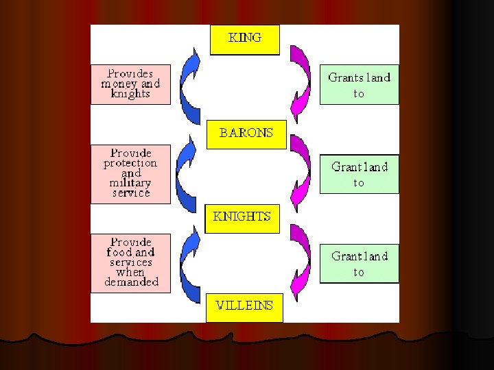 Land the Feudal system Since William had wiped out the great Anglo-Saxon landowner with his invasion he had a lot of land at his disposal. l What did he do with it? Granted it to men who had faithfully fought with him and expected obedience and service in return – thus… The Feudal system. l Note in Anglo Saxon times the Kings kept the loyalty of their soldiers by sharing the spoils of war – In Medieval times land replaced spoils. l Led to disputes about land, so 20 years later, William completed an inventory of land – Domesday Book (Doomsday) – which is preserved in London currently. l