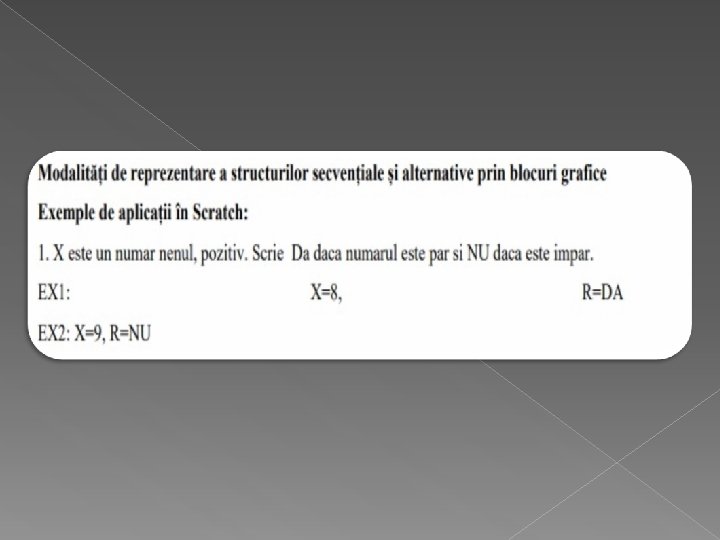 MEDII GRAFICE INTERACTIVE Ø Mediile grafice interactive sunt aplicații care permit implementarea algoritmilor folosind instrucțiuni, variabile, operații reprezentate prin elemente vizuale numite blocuri. Acestea sunt conectate într-o anumită ordine pentru a obține un program.