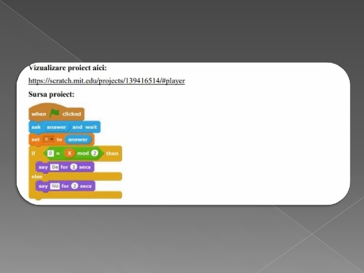 Ø Mediul grafic interactiv SCRATCH este o aplicaţie care oferă copiilor de 8 -16 ani. posibilitatea de a crea propriile jocuri, poveşti animate şi arta interactivă. Ø SCRATCH este o aplicaţie dezvoltată de către grupul Lifelong Kindergarten de la MIT Media Lab în colaborare cu grupul de cercetare KIDS de la UCLA Graduate School of Education & Information Studies. Puteți programa și realiza proiecte în SCRATCH va trebui să vă faceți un cont pe platforma https: //scratch. mit. edu.