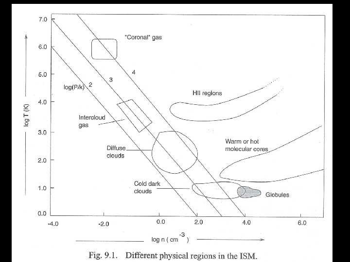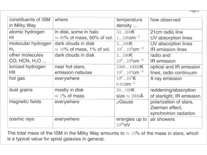 Propiedades estándard Fase Estado del H T (K) n (cm-3) f, mf HIM H II 106 ~ 10 -3 25 -65%, traza WIM H II 8000 -104 0. 3 25%, 15% WNM HI 3 -8 x 103 0. 4 35%, 35% CNM HI 20 -100 1 -50 3%, 10% MM H 2 10 102 -106 1%, 40%