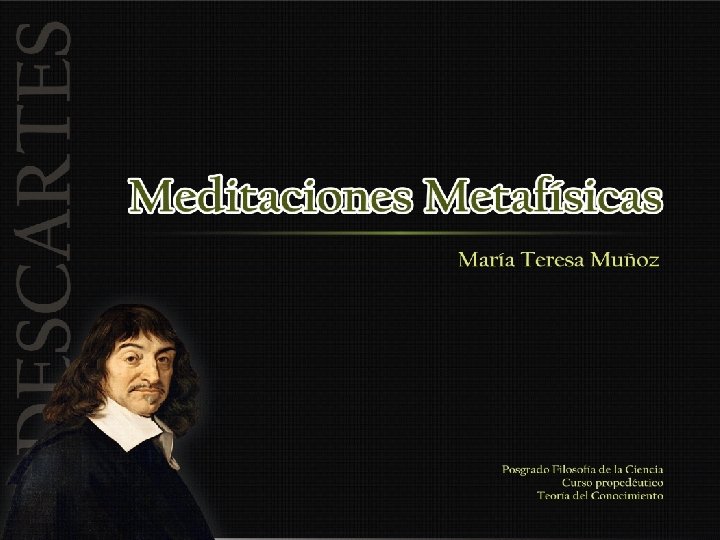 MEDITACIÓN PRIMERA : De las cosas que podemos poner en duda Un genio maligno de extremado poder e inteligencia pone todo su empeño en hacerme errar todo …lo externo no son más que engaños de sueño