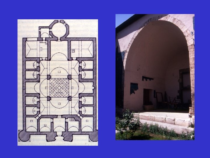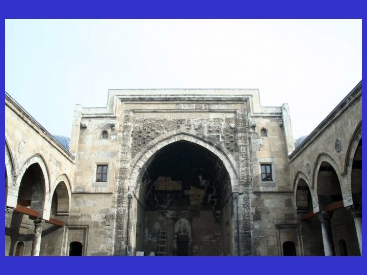 MEDRESE Din adamı ve her türlü konuda çalışacak kişiler yetiştirmek için eğitim veren okullardır. İlk medrese örneğine Abbasi ve Fatimi döneminde rastlanır. Gazneliler döneminde Kahire’de 4 eyvanlı medrese örneği vardır. Anadolu’daki ilk medreseler Danişmentliler’de görülür. EYVAN Üç yönden kapalı, bir yönden dışa açılan ve tonozla örtülü mimari mekan. İlk Sasaniler döneminde ortaya çıktığı düşünülüyor.