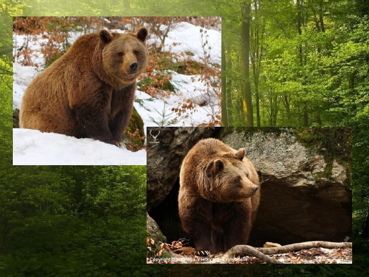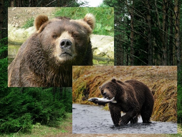 Opis • Medvede grizly dosahujú hmotnosť od 180 do 680 kilogramov a výšku 2, 44 metrov v stoji. Samec je približne 1, 8 -krát ťažší ako samica. Ich farba je rôzna, podľa geografického miesta kde sa grizly nachádza, existujú grizly od blond do tmavohnedej, až čiernej farby. Od ostatných medveďov hnedých sa odlišujú dlhšími pazúrmi a lebečným profilom, ktorý sa podobá na medvede ľadové. • Grizly má veľký hrb na ramenách, ktorý je tvorený zo svalov, ktoré pomáhajú predným končatinám pri hrabaní. Aj napriek masívnej veľkosti medvede grizly dokážu dosahovať rýchlosť až 55 km/h. • Bežne je samotárom, v pobrežných oblastiach sa zhromažďuje popri prúdoch riek, kde chytá lososy. Každý druhý rok samice rodia jedno až štyri mláďatá, ktoré sú malé a vážia približne 500 gramov.