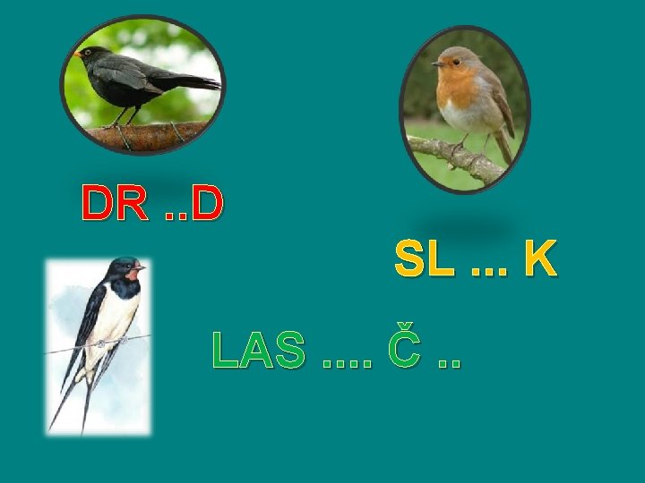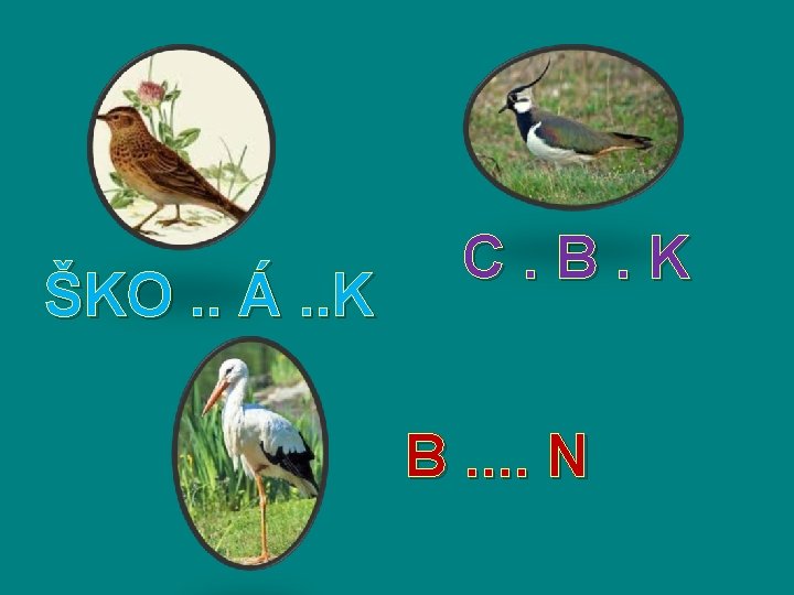 1. APRÍL DEŇ VTÁCTVA • Apríl je mesiac, kedy na Slovensko prilieta najviac sťahovavých vtákov, aj preto sa už tradične oslavuje 1. apríl ako Svetový deň vtáctva. Ornitológovia odhadujú, že na Slovensko priletí každý rok približne 30 miliónov vtákov, z toho asi dve tretiny v apríli. Väčšina vtákov prilieta z Afriky. Prvoaprílová ochranárska tradícia sa zrodila ešte v časoch Rakúsko–uhorskej monarchie. Založil ju už v roku 1900 prírodovedec Otto Hermann, (1835 až 1914), ktorý sa narodil, žil a pôsobil v Brezne. Po prvýkrát sa deň vtáctva oslavoval v roku 1900. Spolu s vtákmi v tento deň oslavovali aj stromy. • Medzi prvými prilietavajú škorce, drozdy, trasochvosty, škovránky, žltochvosty a cíbiky, neskôr pozorované penice, bociany, lastovičky, trsteniariky. Okrem známych poslov jari patrí k sťahovavým vtákom aj orol kráľovský, vlha, prepelica poľná, slávik, kukučka, alebo dážďovník, ktorý prilieta až na prelome apríla a mája. • Skús doplniť názvy ku vtáčikom. Pomôžu ti niektoré doplnené písmená.