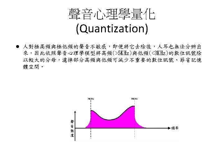 離散餘弦轉換(DCT) 高頻影像 61 62 67 84 108 137 163 179 54 61 76 97 121 149 169 182 5 -10 35 49 66 93 119 147 166 179 186 -8 -4 -4 55 77 110 144 171 185 191 -3 0 76 97 132 166 190 199 198 195 0 1 107 124 154 182 200 206 204 199 137 150 171 191 204 207 205 202 1220 -108 14 427 DCT 158 165 181 194 203 206 205 204 145 -29 36 6 6 -3 -14 8 9 0 -1 0 1 -6 5 -1 3 1 -5 2 1 1 -1 0 0 3 1 -4 -4 -2 0 -5 -5 -2 1 3 1 2 1 4 4 -2 0 -3 -1 0 972 5 3 176 180 186 193 200 205 207 2 -2 175 179 185 192 198 204 206 1 -4 169 173 177 183 191 196 200 204 -3 167 169 175 180 188 194 198 202 1 163 167 171 177 184 191 196 197 162 165 171 176 183 189 195 196 DCT -1 2 175 177 181 186 194 200 205 208 167 173 178 185 192 19 198 低頻影像 1 2 -4 1 1 1 -4 2 -4 -2 -1 -1 1 0 -1 -1 3 1 0 0 2 1 0 1 -3 1 1 -1 -3 -1 9 2 -2 3 -1 -3 -3 3 1 1 -1 -2 -2 1 1 -1 -3 0 -4 0 -1 -1 76 -10 1 27 0 4 -1 1 0 -1 3 0 0 0 -3 0 0 0 0 0 0 0 0 0 0 0 0 67、0、-10、1、-1、-1、-3、0、3、27. . … 資料寫入記憶體的順序 Zig-Zag scan Quantization 16 11 10 16 24 40 54 61 12 12 14 19 26 58 60 55 14 13 16 24 49 57 69 56 14 17 22 29 51 87 80 56 18 22 37 56 68 109 103 77 24 35 55 64 81 104 113 92 49 64 78 87 103 121 120 101 72 92 95 96 112 100 103 99 Quantization 61 0 0 0 0 0 0 0 0 0 0 0 0 0 0 0 0 61、0、0、0、0、0. . … 資料寫入記憶體的順序 Zig-Zag scan