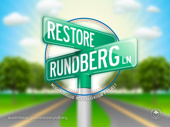 Community Input • The City of Austin, APD and the University of Texas are committed to providing as many opportunities for feedback as possible. The following are currently on going and tentatively planned public input opportunities: • Speak. Up. Austin Restore Rundberg Idea Forum speakupaustin. org/forums • • • Frequent Public Meetings Dates TBA Door-To-Door Neighborhood Survey Conducted by the University of Texas Email and Contact information for the Restore Rundberg Initiative: www. austintexas. gov/restorerundberg