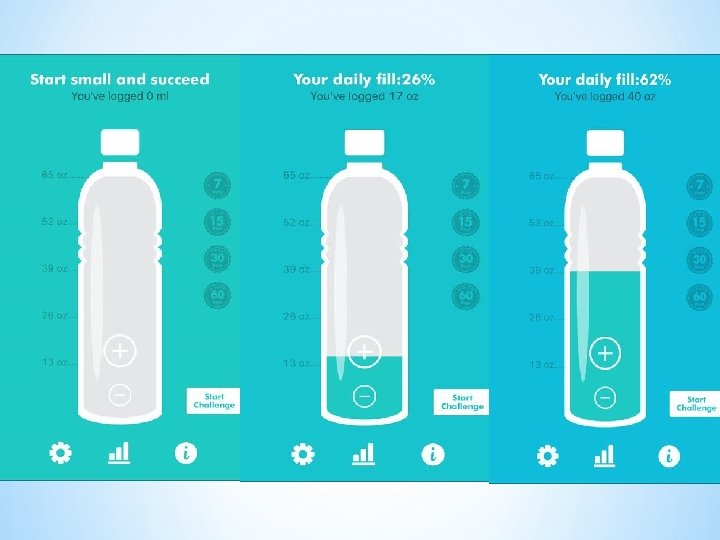 • Simple, FREE app from the App store (i. Phone/ i. Pad)that you use to monitor your water intake and be reminded to drink more water throughout the day. • The overall goal is to motivate you to consume your recommended daily amount of water • We are recommended to drink half of our body weight in ounces (ex: 130 lb person needs to drink 65 oz. daily)