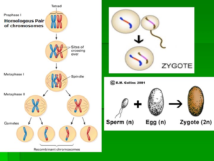 Sexual Reproduction § When the nuclei of the two gametes combine during fertilization, the 2 n number is restored (2 n = 46). § The fusion of two gametes produces the first cell of the new animal called a zygote.