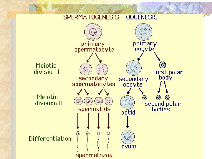 Gametogenesis n n Females: Oogenesis. Males: spermatogenesis.