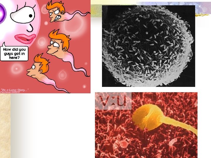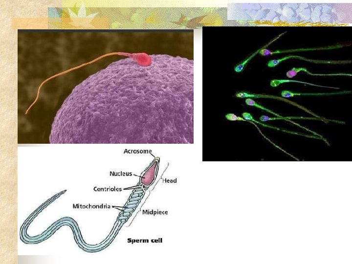 Sexual Reproduction in Animals n Reproductive systems: n n n The sex of an individual might be identified by physical appearances. Gametes of animals develops in Gonads. Female gonads are ovaries. They produce egg cells or Ova. The male gonads are testes: they produce sperm cells. Hermaphrodism: the sexes are not separate. n n n Individuals have both testes and ovaries. Snails, hydra, earthworms. Rare self-fertilization.